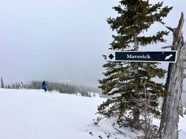 Fawcett adds in this pro tip: “Most won't come all the way down the ridge to score Maverick so it keeps it fresh tracks longer.”
