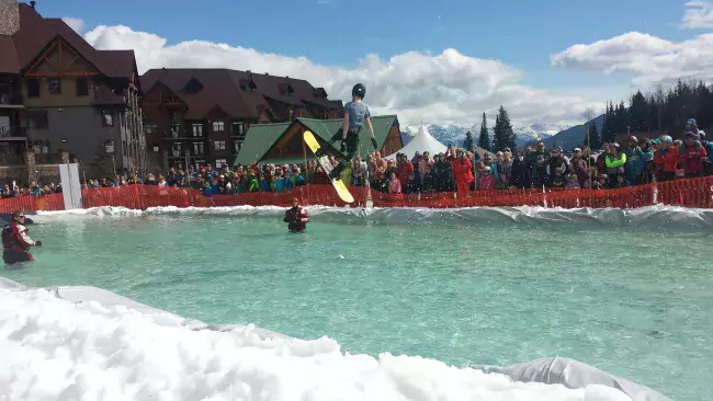Sunshine Village is Alberta’s longest season owing to its high base elevation. It’s the only ski resort in Western Canada where you have to take a passenger gondola up to the base of the resort. And of course, it is famed for having the most legendary slush cup in the region, which typically caps the year on May Long weekend, this year May 22, 2023.