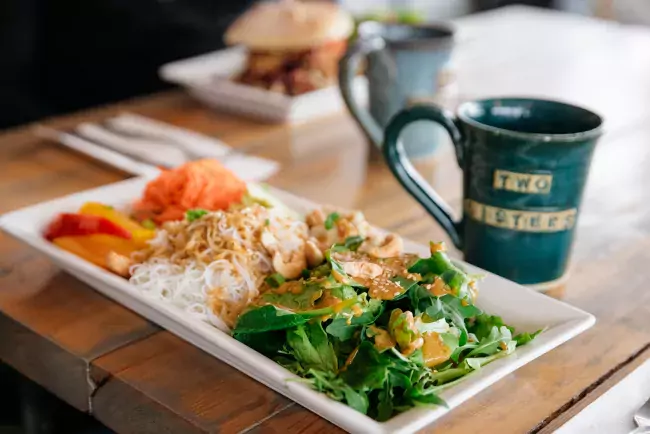 Two Sisters Cafe makes great coffee and nourishing, hearty fare like the Abundance Bowl that will make your belly happy.
