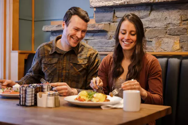 Of course, any big day in the snow should always start with a good breakfast, and NOIR Kitchen and Bar (inside the Prestige Hudson Bay Lodge) serves up one of the best. Tip: the daily eggs benny specials are particularly noteworthy.