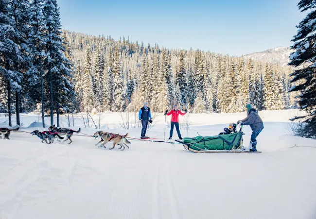 If you are lucky, you will see them in action on the trails! Or, make it a double deluxe day by skiing your way to an Ohana lunch at the McGillivray Lake cabin and then book an après dog sled adventure.