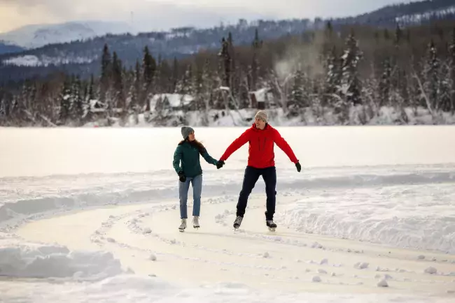 To finish off the day, lace up your skates for a magical winter spin around Lake Kathlyn. A local spot that hosts seemingly endless skating trails at the foot of the majestic Hudson Bay Mountain, it's a quintessential Smithers winter experience.