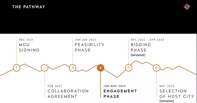 Have a look at this graphic, again from the bid team, showcasing the approach being used to generate the bid, and the path forward that can act as a model for other communities looking to host events in collaboration with their Indigenous community members