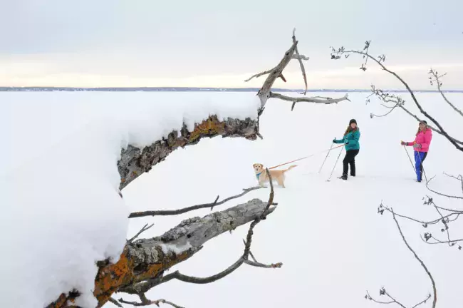 Unlike more action-packed, adrenalin-charged downhill sports, skiing cross-country is usually slower, flatter and quieter. If that sounds like a knock, it’s not. Clip in and take a few strides along the trails at Sir Winston Churchill Provincial Park, and your cares quickly shed away. The rhythm of it - arms and legs alternating in the push-stride of classic skiing - focuses attention on the moment. The landscape of lakes and islands, and the sheer vast expanses of white, make it easy to empty the mind of distraction.