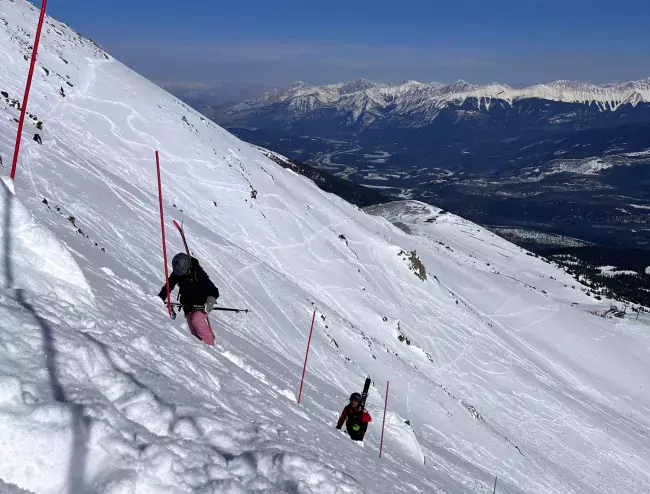 Jasper, AB — On a bluebird day in spring 2023, I stood on the narrow ridge line at the summit of Marmot 2, peering over the cornice into a 40-plus degree pitch.
