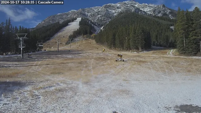 Still in the official lead for first hill to open, Norquay has its guns out and a little natural dusting too.