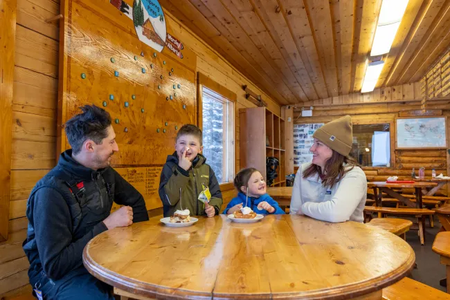 Do laps off Manning's single tbar, head into the Shred the Gnar Snack Bar for fuel, sit by the fire outside or grab a window side seat to look down over the ski shenanigans.