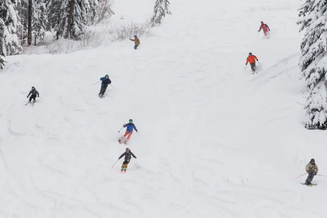 Sure you could lonewolf it, but skiing is more fun with friends… even, or especially, on powder days.