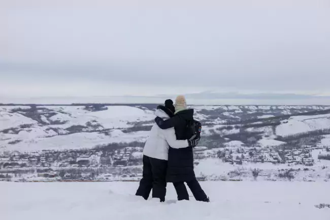 “It’s soooo gorgeous,” says Ashly Mohammad, first-time snowshoer, as she takes in the stunning views of the Peace River valley from the top of the Misery Mountain Ski Area. “You can see everything from up here,” says Ashly as she stands on at least a foot of freshly fallen powder.