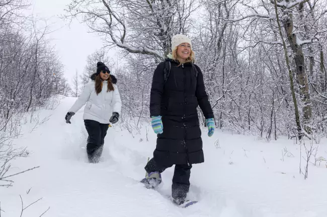 That’s the beauty of snowshoeing; you can make the experience however you want. Pack some snacks and have a picnic in the forest or stop at one of many gorgeous lookout points (there are a few).