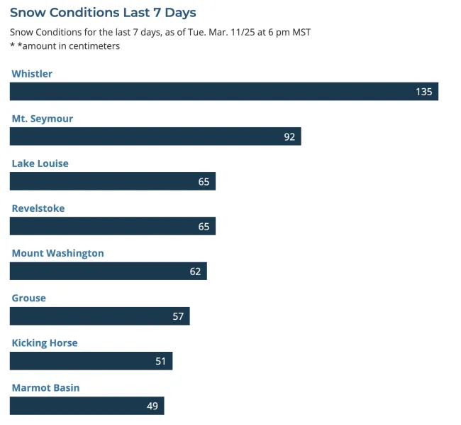 Western Canada Another round of winter has arrived and March Madness is on! Half a metre or more filled in resorts across BC and Alberta.