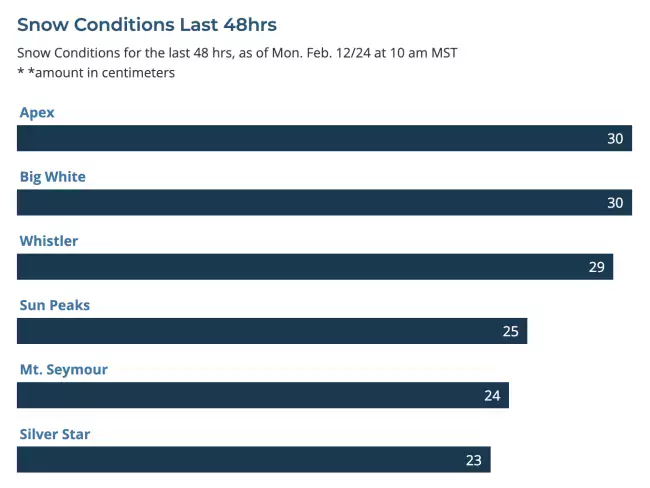 That’s right! While you were watching Taylor Swift at the Super Bowl, snow in the 20 - 30cm range blanketed resorts from Whistler to Big White, Fernie, Sun Peaks and SilverStar to Marmot Basin, culminating in some exciting new rope drops.