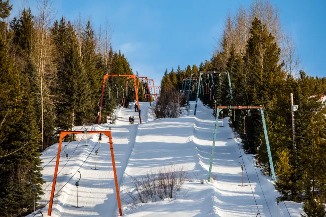 Troll Resort, 44 kilometres east of Quesnel, opened in the early 1970s with five runs off the Red Lift that stretches to the top. Since then, the Silver Lift takes skiers and boarders in the trees higher up and the Blue lift and the Yellow magic carpet access the lower slopes. In all, there are 240 acres of terrain with 16 runs, terrain parks and snowshoe trails. Over the summer of 2015 logs and dirt were pushed to create a ski-cross course.