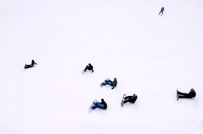 Look up. This seems like a no-brainer but it's shocking how many people look only a few feet in front of their skis or snowboard. As with driving or pretty much any fast-moving sport, you want to look far ahead and also around so you know what's coming.